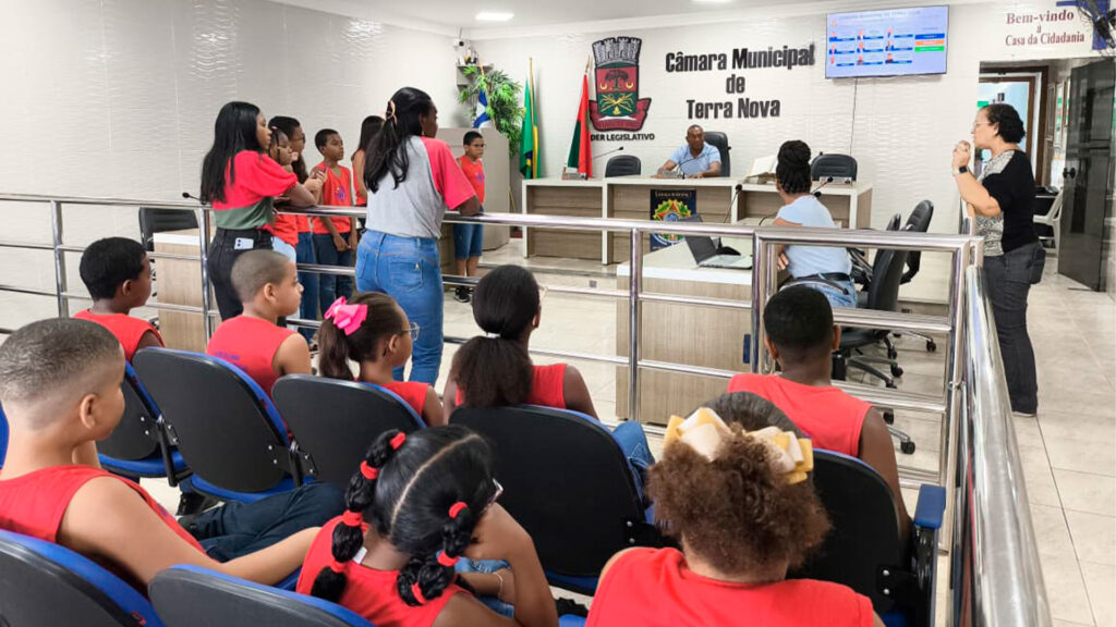 Na manhã desta sexta-feira (17), a Câmara Municipal de Terra Nova recebeu a visita de alunos do 4º e 5º anos da Escola Monteiro Lobato, em uma ação educativa que aproximou o poder legislativo das novas gerações. A atividade teve como objetivo promover o aprendizado sobre o funcionamento da Câmara, o papel dos vereadores e a importância da participação cidadã no dia a dia do município.